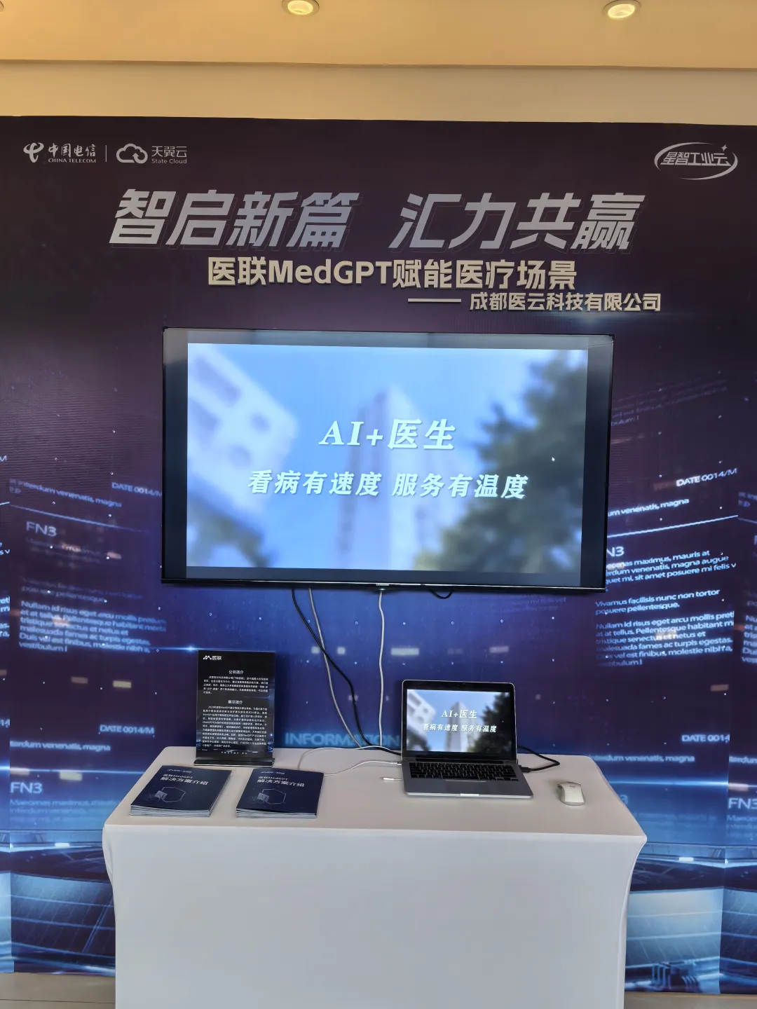 2024年11月14日,由中国电信四川公司主办的“国云智算”生态大会在四川省成都市武侯区中国电信西部信息中心盛大举行。此次大会以“智启新篇,汇力共赢”为主题,旨在汇聚云计算、人工智能等领域的顶尖企业和专家,共同探讨数智时代的新机遇与新挑战,推动科技与产业的深度融合。作为医疗人工智能领域的践行者,成都医云科技有限公司(下称医联)携其明星产品MedGPT亮相展会,成为大会的焦点之一。