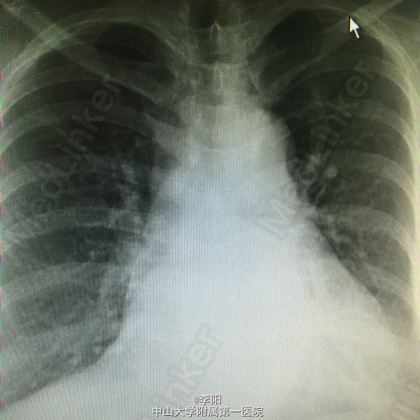 该患者一年前出现劳力后气促,走路1000米后可出现,当时无胸闷,胸痛,心悸等症状,伴有双下肢轻度水肿,未予诊治。6月前患者上述症状明显加重,走路200米即可出现气促,伴胸闷,心悸等症状双下肢开始出现重度水肿。