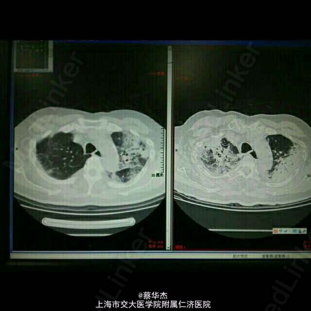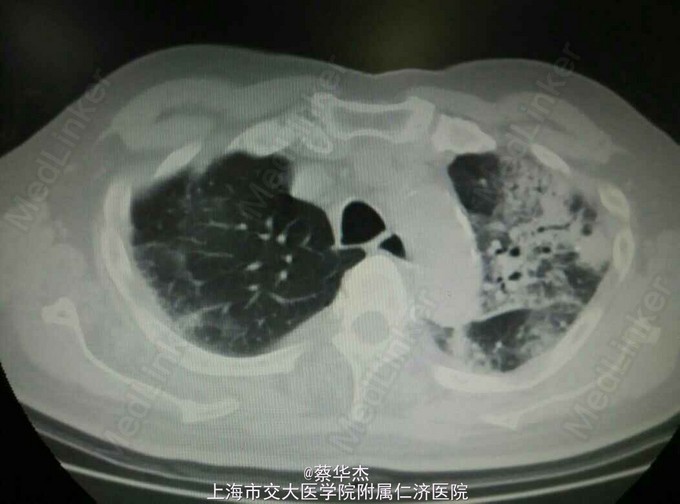 1.患者男,80岁。因“咳嗽一月”入院。 2.现病史:患者于入院前1月,无明显诱因下出现咳嗽,伴有咳痰、发热,无胸痛、不伴呼吸困难,无胸闷心悸,无头晕黑曚、无乏力冷汗等不适。患者咳痰色白,无拉丝感,量不多。发病第一周,时有发热,体温最高到38度左右,不伴寒战。患者自行服用“阿奇霉素”治疗一周,热退未复发,但咳嗽一直无明显好转。来我院门诊检查,胸部HRCT示“两肺多发炎症渗出(左肺上叶为著)。两肺下叶轻度间质性改变,两肺散在条索灶及斑点灶,建议随访。两侧胸膜局部略增厚。主动脉、冠状动脉硬化,心影饱满”。患者为进一步诊治,收住我科。近来,患者精神可,胃纳佳,睡眠可,二便无殊。 3.既往史:既往有高血压病史10年,最高180/80mmHg,服用安内真、安搏维控制可。2型糖尿病史4年,饮食控制可。心律失常(阵发性房颤)1年零8月,服用可达龙0.1 qd 已一年半,心律失常控制佳,查甲状腺功能正常,多次复查肺CT未发现间质明显病变。慢性支气管炎20余年。