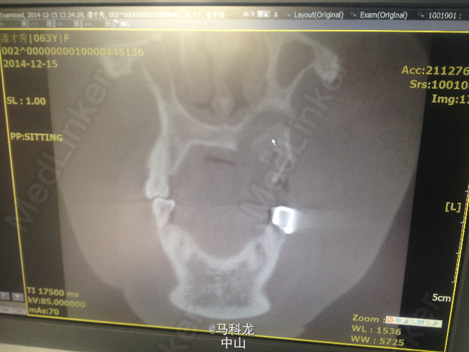查体见:口内牙槽骨暴露,口腔有异味 全景结果是:拔牙处牙槽骨与上颌骨明显有分离