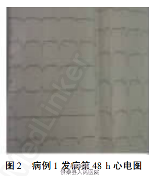 查体——体温35.8℃,呼吸20次/分,脉搏73次/分,血压138/70mmHg,体重指数22.3kg/m2。神志清楚,未闻及颈动脉杂音。 双肺呼吸音清,未闻及干湿性啰音。 心界不大,心率73次/分,律齐,心音有力,P2<A2,各瓣膜听诊区未闻及杂音。 双下肢无水肿。辅查—— 急诊查心电图示II、III、aVF导联ST段抬高约0.1mv,V3-V6导联ST段抬高0.1-0.3mv(见图1),发病后48h心电图示除aVR及V1 导联外 T波深度倒置(见图2)。