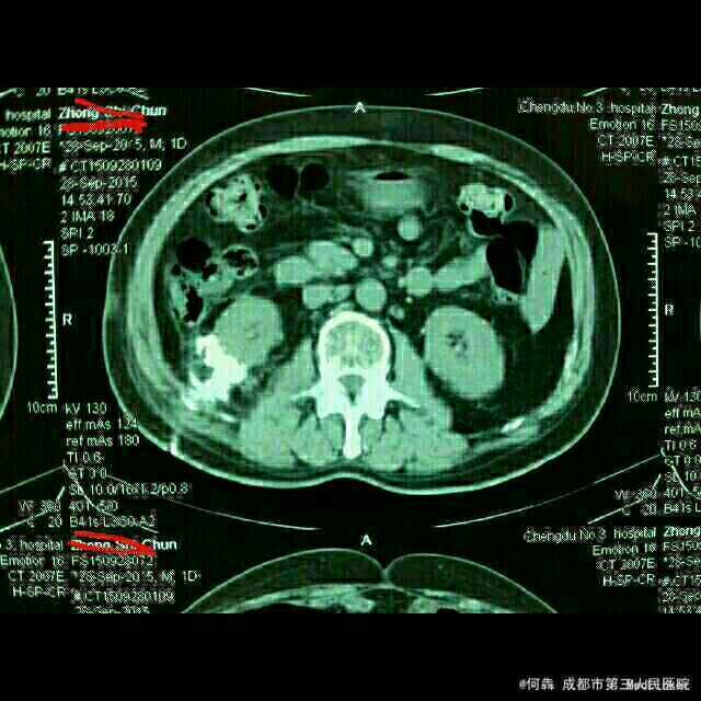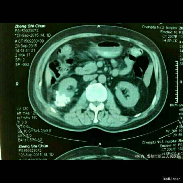 右腰部切口感染伴窦道形成,右肾癌 腹腔镜右侧NSS术后。