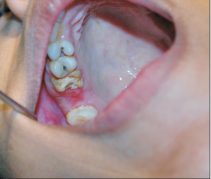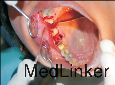 口内检查发现右上颌第二磨牙处可见4-6mm穿孔