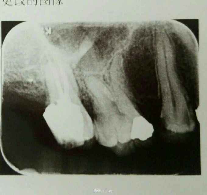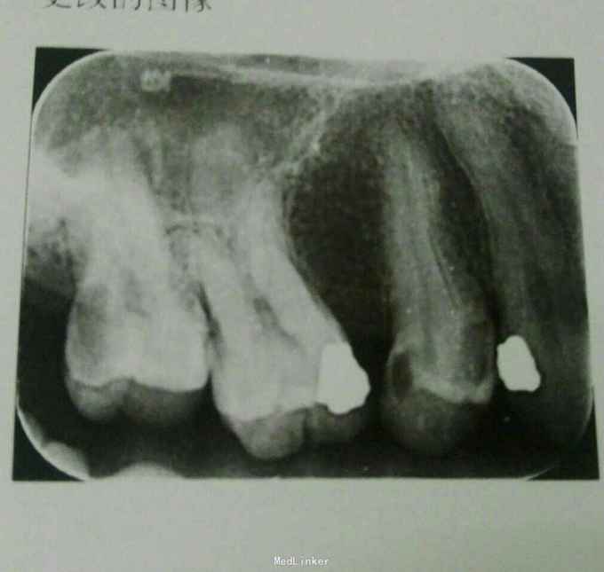 讨论:此例患者诊断明确,诊治过程属于常规过程,上颌7根管解剖形态常规来说有3个根管,但是根管口形态变异较大,在这个病例中,颊侧近远中根管口仅间隔0.5mm,容易遗漏,因此行仔细探查根管口,防止遗漏,导致治疗失败