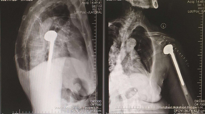 完善检查后行,左肩关节人工肱骨头置换术。手术过程一小时40分钟。术后第三天出院。