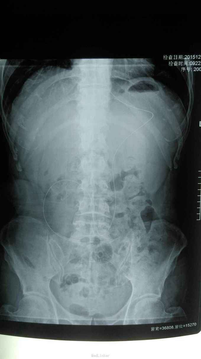 患者:男,62岁,主 诉:残胃癌多发转移化疗后,恶心呕吐5月余。 现病史:患者于2014年9月份自觉进食后上腹部饱胀感,就诊于忻州市人民医院,胃镜提示:胃大部切除术后,吻合口大弯侧粘膜隆起,充血,水肿,伴糜烂,质 脆,易出血,于2014年9月23日就诊于中国医学科学院肿瘤医院,诊断残胃癌,中分化腺癌,全腹部示CT提示:胃远端呈术后改变,吻合口扩张不良,吻合口壁厚,吻合口周围、胃左区新发现多发不均匀结节,大者短径约1.6cm;腹腔肠系膜根部、腹膜后多个小淋巴结;肝脏新出现多发结节,大者直径约1.5cm,考虑转移,盆腔少量积液。于2014年11月15日行XELOX方案化疗一周期,具体用药:奥沙利铂150mg,d1希罗达1500mg早 2000mg晚d1-d10,14天重复一次。后于忻州市人民医院2014年11月至2015年01月给予XELOX 方案化疗全身化疗5周期,化疗第二周期后,患者上腹部饱胀感减轻。于2015年3月12日就诊山西省肿瘤医院,全腹部CT提示胃腔缩小,残胃壁增厚,最后处约1.9cm,,残胃下方系膜内一枚囊性结节,大小约2.9X2.3cm,转移不除外:肝脏S8段一枚低密度灶,大小约为0.6X0.4cm;右肺中叶结节,大小约为1.6X1.4cm,肝脏S8段动脉期环形强化结节,考虑转移,右肺中叶炎性病变,继续给予行XELOX方案化疗2周期(奥沙利铂200mg,卡培他滨1.5g/次,2次/日,共14天)。因骨髓抑制明显,于2015年5月4日入该院后给予卡培他滨化疗一周期(卡培他滨2g/次,2次/日,共计14天)。2015年6月10日入该院复查CT提示肝内多发低密度影,部分新增,右肺中叶局限性肺不张,纵膈内多发小淋巴结,给予更换TP方案化疗一周期(多西他赛120mg,顺铂90mg),治疗结束于6月25日出院。出院后患者间断出现恶心、呕吐,于7月13日入该院复查胸腹部CT:残胃壁局部略变薄;头颅核磁未见异常。患者体质较差,不能耐受化疗,于7月21日始口服阿帕替尼250mg/日治疗。后患者间断出现恶心、呕吐,呕吐物为胃内容物,8月底患者停服阿帕替尼。9月8日入该院复查提示:肝脏多大转移增大,患者恶心、呕吐明显,予以留置鼻饲营养管,行EOF化疗一周期,共计用药:奥沙利铂150mg,表柔比星50mg,氟尿嘧啶3.0g,化疗所致骨髓抑制Ⅱ度。2015-11-02再次入住山西省肿瘤医院给予康莱特静点等对症治疗9天。目前患者每日鼻饲饮食后呕吐7-8次,每次呕吐量约40-50ml左右,全身疲软,精神食欲差,睡眠尚可,大便3-4日一次,较干结,小便基本正常,近3月体重下降约5kg。 既往史:既往患者高血压病史15年余,最高血压达180/100mmHg,平素口服尼福达片1片/日降压治疗,血压控制尚可;2型糖尿病10年余,曾皮下注射诺和灵30R控制血糖,近1月因进食量减少,已停用胰岛素治疗;40年前因“十二指肠穿孔”行胃大部除术;5年前山西医科大学第二医院确诊右半结肠癌行右半结肠切除术;10年前曾行阑尾切除术