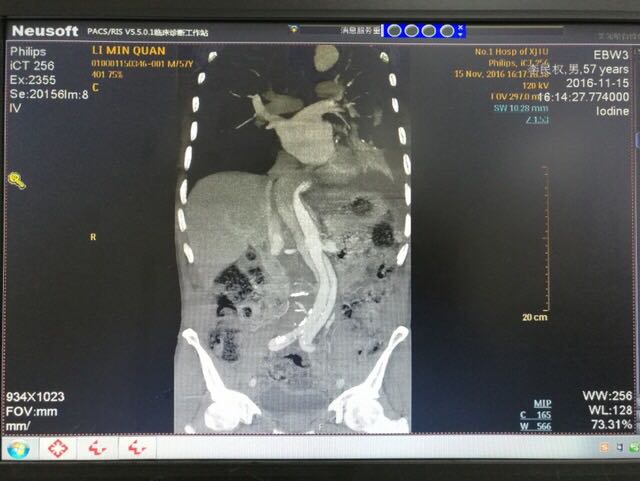 患者,男,58 岁,因「突发背部疼痛 1 天」就诊于西安交大一附院急诊科,行主动脉 CTA 提示:主动脉夹层 Stanford B 型,累及双侧髂动脉。患者既往高血压病史 3 年,血压最高达 180/110 mmHg,并未规律服降压药,血压持续在高水平状态。入院时患者高热、痛苦面容、胸闷气短、左侧胸腔积液。