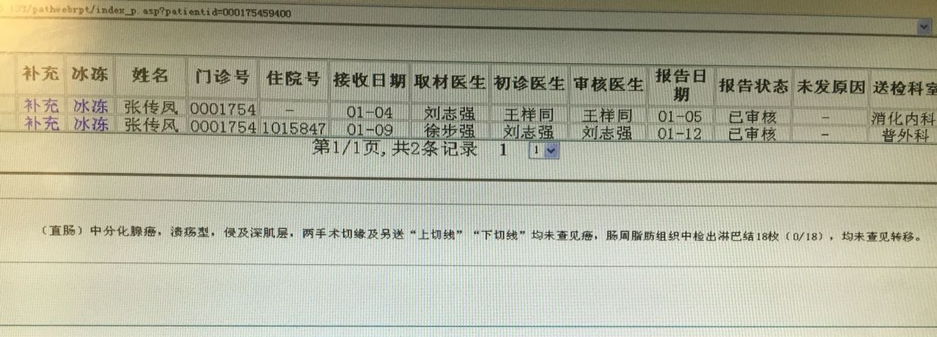 患者女性,62岁,既往左侧尺骨骨折并行手术。黏液脓血便2年余,左下腹隐疼不适1年,确诊直肠占位2天。