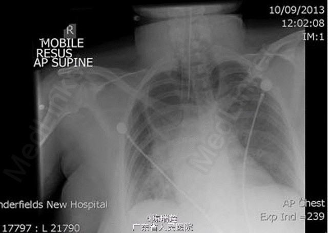 诊断:巨食管症 处理:到达医院急诊时,患者呼吸困难症状进一步加重,出现呼吸暂停。即刻给予气管插管和呼吸机辅助通气。给予放置鼻胃管,引流出大量胃内容物。拔管后行胃十二指肠镜检查,未发现存在梗阻。患者诊断为巨食管症,后转入一家三级医院行肌层切开术治疗。