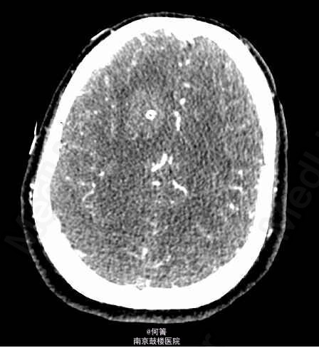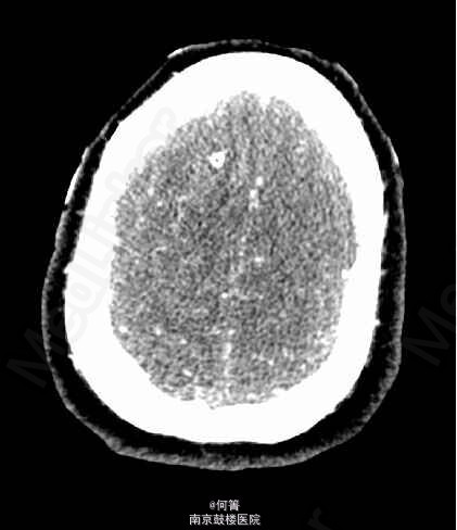 患者,女,59岁,因“突发头痛伴意识障碍4天”入院。入院前4天,患者无明显诱因突发头痛,伴有恶心、呕吐,呕吐多次胃内容物,继之出现意识障碍,呼之不应,小便失禁,无四肢抽搐,送至当地院就诊,行头颅CT示颅内出血,予侧脑室外引流穿刺及输液治疗,患者意识逐渐恢复,转至我院进一步治疗。既往高血压病史4年。