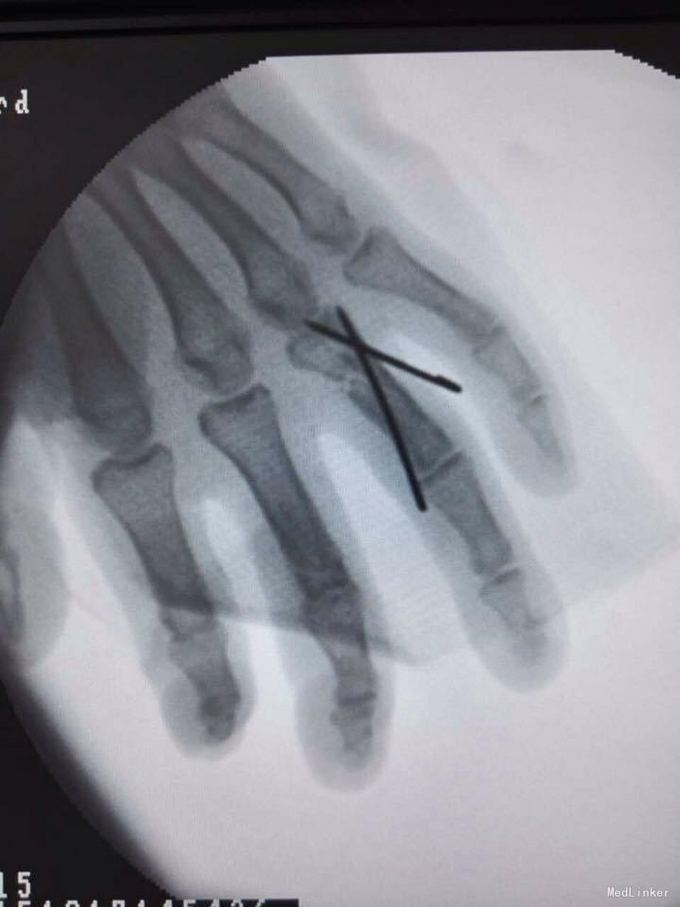环指开放性骨折 伸指肌腱断裂 予以清创缝合 指骨骨折克斯针内固定 肌腱修复