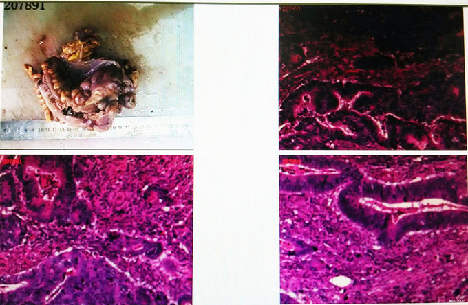 术后病理:见图,术后诊断:乙状结肠癌 T3N0M0 ⅡA期 老年患者出现便血、大便习惯改变、腹痛等症状往往提示肠癌肿物较大,分期较晚。肿瘤的治疗重点在于早发现、早诊断、早治疗。所以肿瘤研究往往针对早期诊断标志物,分子靶标等。对于复杂、晚期病例的诊治,近年来兴起多学科综合治疗,通过结合影像、放射科、病理科、肿瘤科、康复科等多学科对一个病例进行讨论,总结出对患者最优的治疗方案。