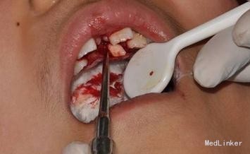 门牙间有多生牙,前牙列不齐。上唇系带过低。