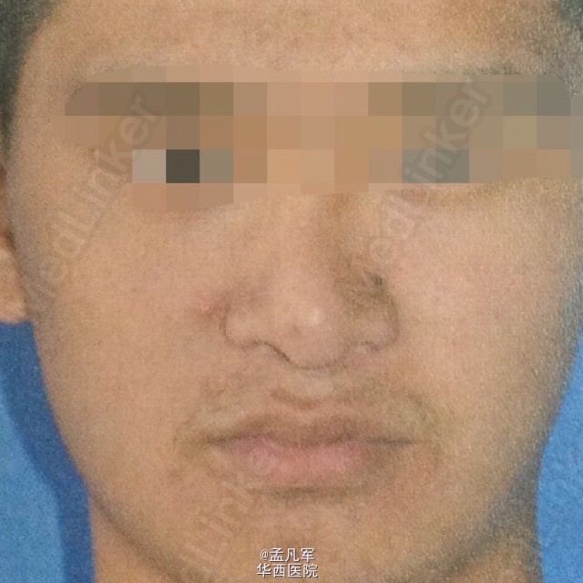 Binder综合症又称为上颌窦-鼻发育畸形异常,是一种先天畸形,以上颌部发育不良为主要特征的面中部发育障碍,同时伴有其他系统畸形。对于Binder综合症患者鼻部低平和面中部后缩,医生采用各种植入材料修复。本例就是使用肋骨-软骨修复(摘抄自中华整形外科杂志)