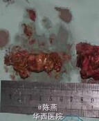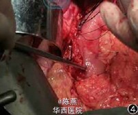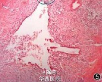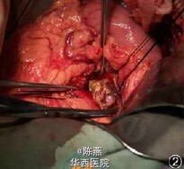 患者男,39岁,因反复上腹部疼痛4年,加重1个月入院。疼痛为阵发性,伴腰背部放射痛,曾在当地医院检查提示:胰管结石,经禁食、抗感染等治疗后疼痛缓解。患者疼痛反复发作,均经保守 治疗缓解。近1个月来疼痛剧烈,发作频繁,急诊收住我院治疗。 【既往病史】 既往曾有饮白酒史20年(100ml/d)。 【入院查体】 消痩貌,皮肤及巩膜无黄染,腹软,脐上方深压痛,无反跳痛,肝脾肋下未及,全腹叩诊呈鼓音,移动性浊音阴性,听诊肠鸣音正常。 【辅助检查】 血常规正常,血尿淀粉酶浓度正常。 腹部CT提示胰管明显扩张(图1 ),其内可见多发高密度影,最大约2.8cm×2.4cm。行手术治疗,术中见胰腺萎缩,质地变硬,胰管扩张直径2.0cm,胰头部及胰尾部可触及结石。切开胰腺被膜,顺胰管方向切开胰管,胰头及胰体部取出结石数枚,最大约3.0cm×2.4cm×2.0cm(图2,3),继续探查见胰尾部胰管狭窄,其内充满结石,行胰尾切除+胰管空肠Roux-en-Y吻合术(图3,4),手术顺利,术后患者恢复良好,腹痛消失,无脂肪泻、血糖浓度升高等并发症。术后胰腺组织病理切片呈慢性炎症表现(图5,6)。
