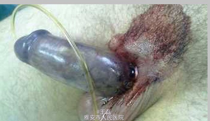 一名35岁的男性将戒指套入阴茎后1天后的样子