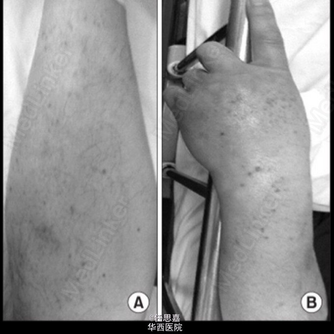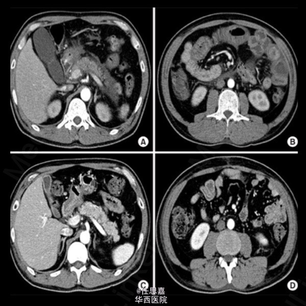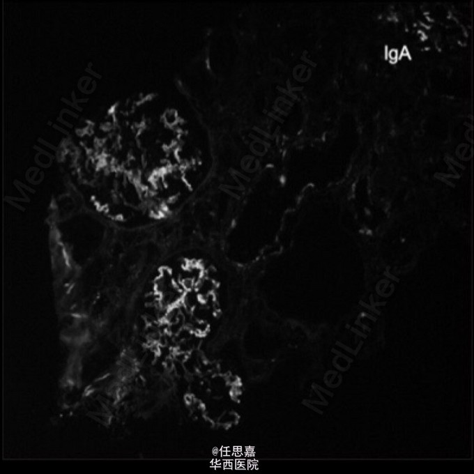 53岁男性,因“腹部绞痛伴胆汁性呕吐3天”入院,入院前10天患者出现双踝关节疼痛、肿胀,双上下肢远端皮疹。无外伤史,无药物史,勿暴饮暴食,近期无饮酒史,既往体健,无家族史。查体:T 36.4℃,BP 130/80mmHg,HR 70次/分,双上下肢远端可见红斑,双踝关节肿胀伴轻压痛。全腹压痛,中上腹为主,无明显反跳痛,无肝脾大,肠鸣减少,胫前水肿。辅助检查:HGB 142g/L,WBC 16.2*10^9/L,PLT 493*10^9/L,CRP 5.74 mg/dL,GLU 136 mg/dL, BUN 26 mg/dL, CREA 1.4 mg/dL,血Ca 8.0 mg/dL,血清白蛋白 18g/L,AMY 3,093 U/L,LIP 4,063 U/L, ALT 103 IU/L,AST 128 IU/L,小便隐血(+),24h尿蛋白定量4.9g,血清IgA 331 mg/dL。RF(-),ANA(-),ANCA(-)。腹部CT显示:胰周积液,多节段肠壁增厚。肾活。检:毛细血管增生性肾小球肾炎,免疫荧光法可见肾小球系膜IgA沉积。皮肤活检:非特异性血管周围少量淋巴细胞浸润。考虑诊断“过敏性紫癜并发急性胰腺炎,肾小球肾炎”。予胃肠减压,甲强龙静滴60mg/d,8天后患者AMY、LIP恢复正常,第9天复查腹部CT未见明显异常。随访3月,小便仍有隐血、蛋白。 摘自J Rheum Dis. 2012 Feb;19(1):43-46. English. Published online February 28, 2012. http://dx.doi.org/10.4078/jrd.2012.19.1.43