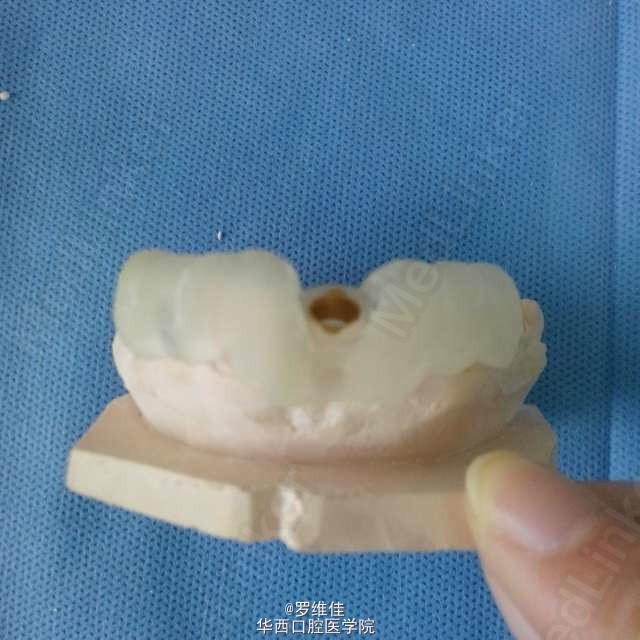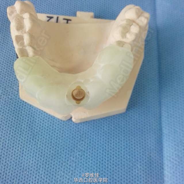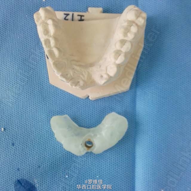 对于前牙植入的角度和深度,应用专门的导板会有更准确的入路,最近有一个病人前牙单颗缺失,需要种植修复,这是专门定制的导板,后期效果以后会跟进