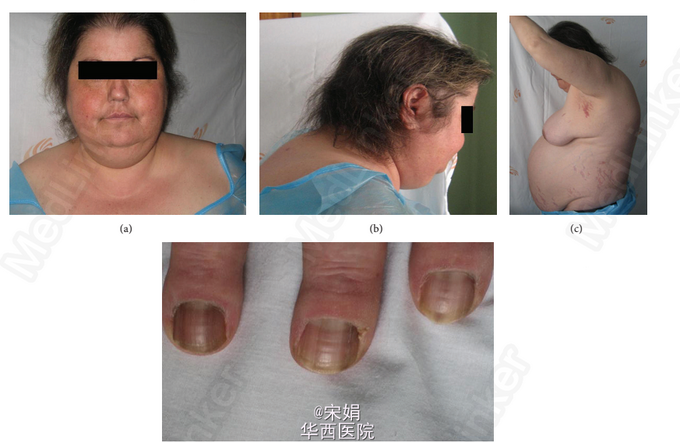 48岁女性,该患者高糖皮质激素表现病史长达 1 年,实验室检查提示为异位 ACTH 所致的 Cushing’s 综合征,各种影像学检查除肺内小结节外无阳性发现,而肺内小结节的功能性检查又无异常发现。最终经过肺叶切除病理证实为肺类癌。