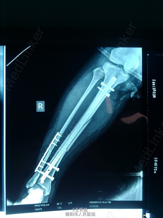 患者女性,26岁,3日前滑雪致右胫腓骨粉碎性骨折,待时机适合时行手术治疗。