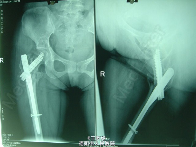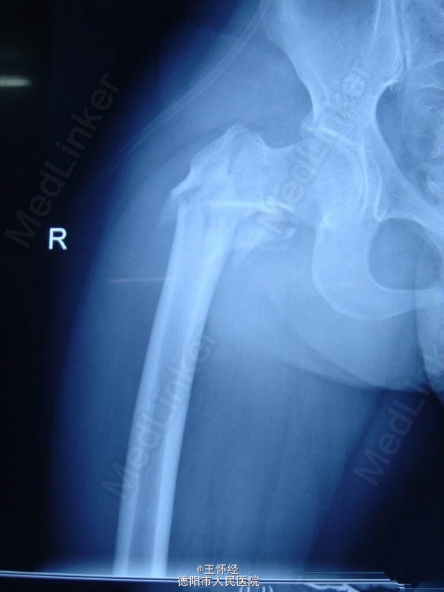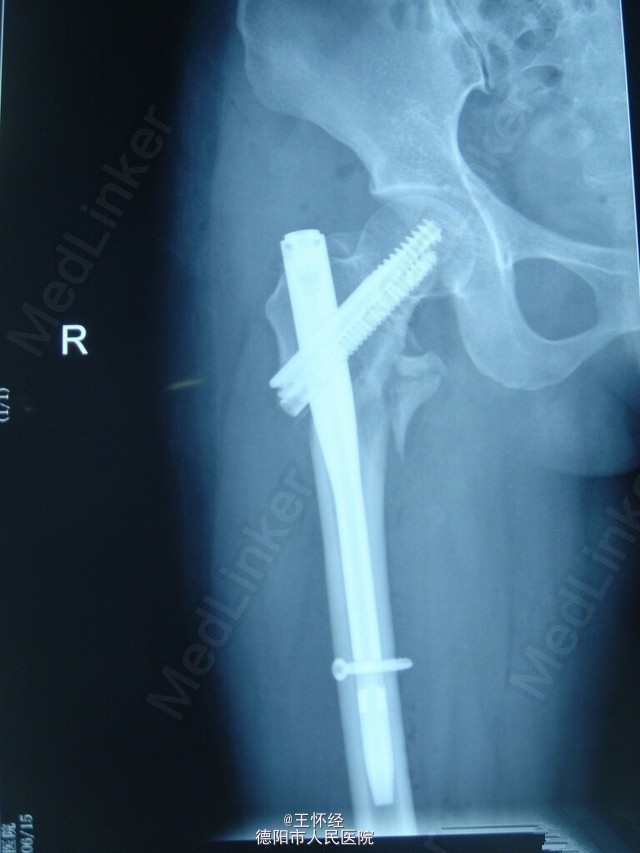 患者女性,28岁,车祸伤急诊入院,右腿疼痛不能活动,x线检查发现转子间骨折。