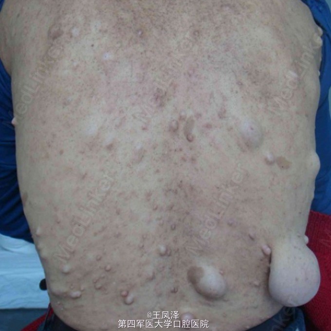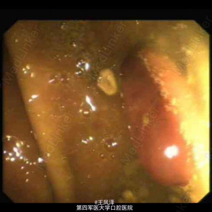 患者,男,42岁,因反复柏油便4年发作10d入院,又称遗传学肠息肉综合症,其特征为结肠息肉病合并多发性骨瘤和软组织肿瘤,为常染色体显性遗传病,很罕见