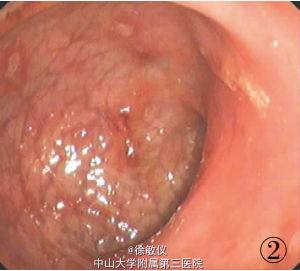 20岁男性,反复腹泻半年,加重2周伴少量脓血。 体检:肝、脾肋下未触及,全腹无压痛,无包块,无肌紧张,肠 鸣音正常,双下肢不肿。实验室检查:大便隐血(+);大便培养 +药敏:未培养出病菌;余均正常。肠镜:距肛缘10cm 以下直肠黏膜充血,水肿,散在多发浅溃疡。取直肠组织活检病理示:直肠黏膜固有层充血、水肿,伴淋巴细胞、浆细胞、中性粒细胞以及嗜酸性粒细胞等急慢性炎细胞浸润,并见淋巴滤泡形成,部分腺体杯状细胞减少,局部表面上皮脱落,糜烂面附有炎性渗出物及成片的大滋养体,滋养体内见一大核仁,胞质内有吞噬红细胞现象。病理诊断:直肠阿米巴病。患者住院8天,给予甲硝唑、大蒜素等药物抗阿米巴治疗后痊愈出院,痊愈后1年,随访无复发。