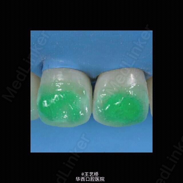之前的病例展示了渗透树脂治疗正畸后脱矿的效果。渗透树脂的适应症较严格,对于牙釉质早期脱矿效果显著,对于四环素牙及重度氟斑牙无明显效果。轻度氟斑牙可使用。