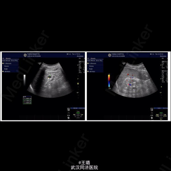 患者,男,62岁,一年前发现尿频、尿急,尿痛,近期出现血尿,遂来我院;B超示双肾结石,左侧多发囊肿,肾萎缩;心脏B超示左心室扩大,主动脉瓣退行性病变。考虑患者自身情况,目前未进行手术治疗。