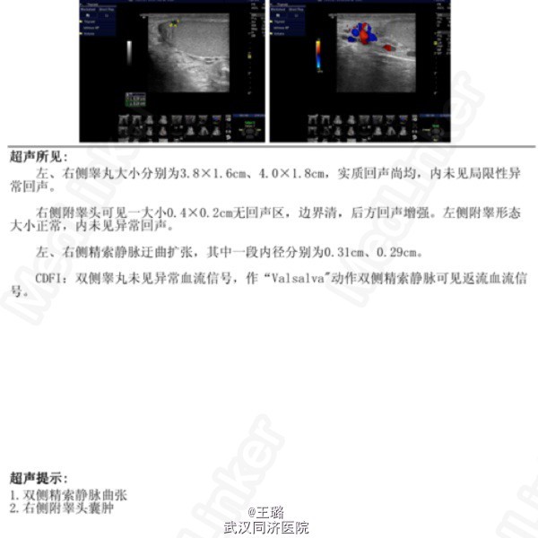 患者,男,60岁,发现腹股沟区包块10余月,近期发现增大,入院B超示双侧精索静脉曲张,右侧附睾头囊肿,拟行静脉减压穿刺治疗。