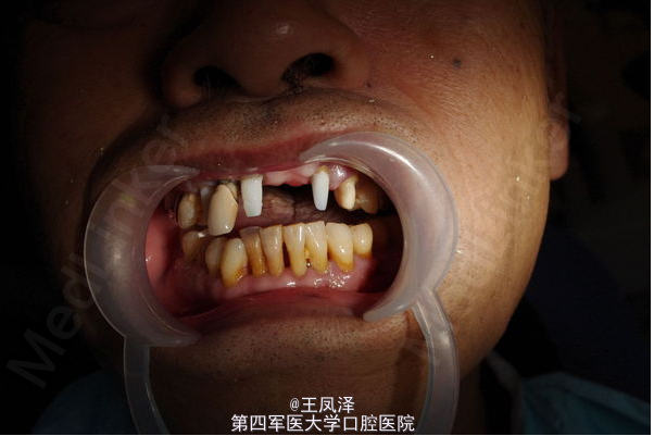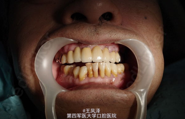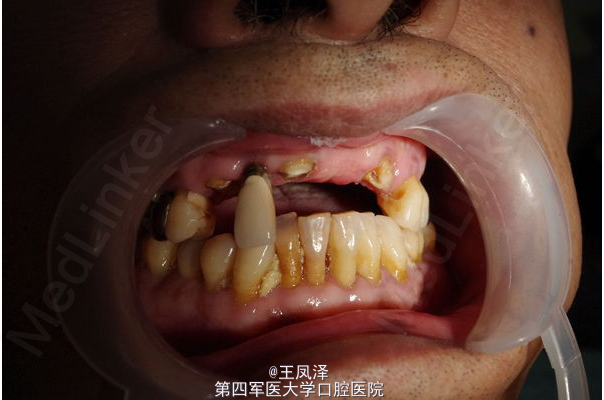 患者,男,老年男性,要求修复上前牙、迫切期望改善患牙的美观、咀嚼功能以及社交心理。
