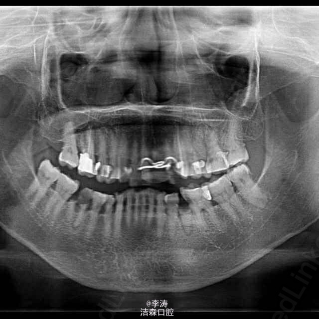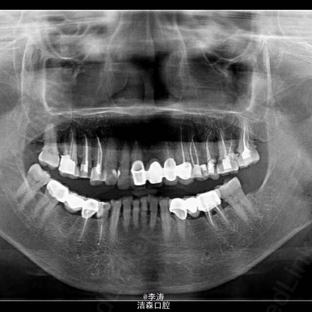 这是接诊的最难的一例病例,患者65岁女性,主诉牙齿疼痛,检查基本上全口邻面深龋,治疗完左边,右边又痛,结果是全口多数牙都被根管治疗,治疗完准备不做冠,又被咬崩,结果又不得不将根管治疗的牙全做冠。