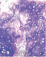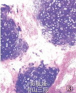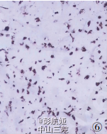 患者女性,37岁。因渐进性头痛2年、右侧头面部及肢体麻木3个月入院。查体:患者意识清晰,双侧视乳头水肿,右侧头面部及肢体感觉减退,右上肢及下肢肌力4-5 级。CT检查,左顶叶见一高密度影肿块,9.5cm*7cm*6.5cm,边缘清楚,中央可见钙化及囊性变(图1),肿块体积巨大,脑中线结构右移(图 2),MRI 显示肿块呈不均匀长T1、长T2信号,GD-DTPA 延迟期有强化效应。CT、MRI 诊断:左顶叶占位,性质待定。临床以左顶叶肿瘤行手术切除治疗,术中见肿块位于中央沟内,与大脑镰相连,大脑镰右移,左顶叶受挤压显著,肿块质硬,活动可,与脑组织无粘连,予肿块完整切除,标本送病理检查。术后患者头面部及肢体感觉恢复,肢体肌力增加,在随访中。