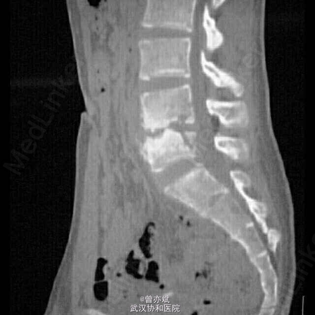 近期,Chi教授等在J Pediatr杂志上发表了一篇儿童脊柱结核的病例报道。病史如下: 患儿为13岁男孩,3个月来体重明显减轻且伴有身体不适,1月前出现左臀部疼痛。体格检查:体温37.8℃,体重减轻6kg,左臀部压痛。脊柱X射线照片示:腰椎椎间盘变窄(图1)。 图1. 脊柱X线片示L4 -L5椎间盘间隙变窄(箭头处) 完善CT检查示:大量脓肿累及胸椎旁区域、左侧腰大肌、髂腰肌、臀中肌和大收肌肌肉,且破坏相邻椎体(图2、3)。 图2. 脊柱CT示:广泛脓肿形成,累及胸椎旁区、左腰肌、髂腰肌、臀中肌和大收肌肌肉(小箭头)。相邻椎体骨破坏(大箭头)。 图3. CT的矢状面示:L4 -L5椎间隙减少,L4和L5椎体破坏 随后给予CT引导下椎旁脓肿穿刺,引流出奶油色的脓液(如图4)。 图4. 椎旁脓肿CT引导下引流出典型的奶油色脓液。 脓液培养结果示:结核杆菌阳性。于是给予患儿抗结核治疗,且达到完全缓解。 结核病仍然威胁着全球人类的健康,其发病率在不同地域有些许差异。脊柱结核,也被称为波特病,可能会造成永久性畸形和神经损害。早期诊断和及时治疗非常重要,但延误诊断的情况并不少见。 结核性脓肿是“冷”脓肿且伴有小范围的炎症浸润,因此,在疾病早期疼痛较为模糊,诊断仍具较大挑战。 (来源:丁香园)