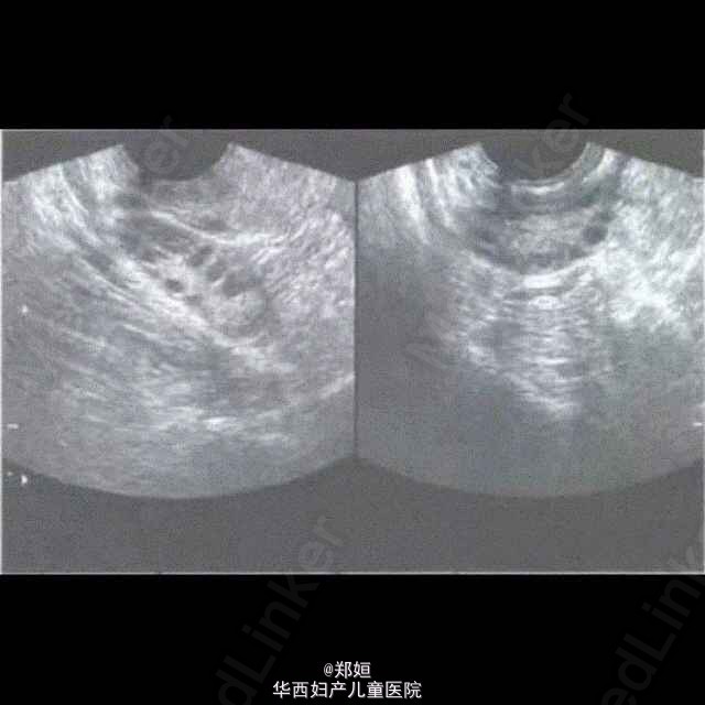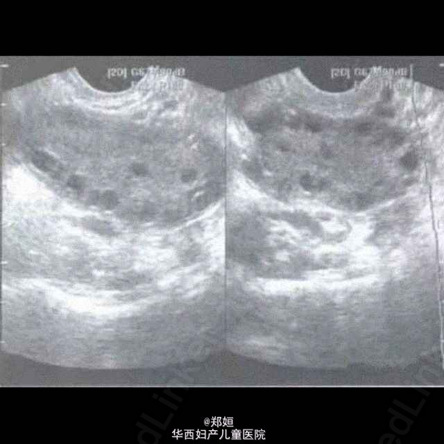 PCOS是调节机制失常所产生的一种综合征,患者具有月经稀发或闭经、不孕、多毛和肥胖等一组症状,双侧卵巢呈多囊性增大改变。这有几个很好的超声诊断图跟大家分享一下吧。