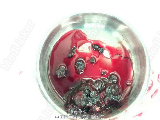 患者44岁男性,晨起发现左侧肢体无力,伴有言语不清,烦躁,入院后查CT(图1)考虑右侧基底节区出血,急诊行“开颅颅内血肿清除术”,术中取出的血凝块(图2),术后又复查CT(图3),脑实质出血已经基本上清除干净,右侧脑室、三四脑室仍有少量残留的出血。
