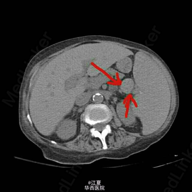 超声(图1)及CT(图2)所示为副脾。