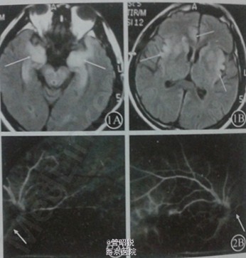 患者,男,因“发热11天,精神异常6天,意识障碍2天”入院。患者发病前1周有流涕、咳嗽症状。查体:双肺呼吸音粗,中度昏迷,查体不合作,双侧瞳孔对光反射迟钝,颈强直,双Kerning征阳性。6天后,意识转清;行走起步及转弯较缓慢,双上肢及头部出现静止性震颤。但患者入院6天后清晨述视觉障碍,无光感,查体见双侧瞳孔扩大,直接、间接对光反射消失。眼科会诊:上方和鼻侧及下方视网膜分支动脉闭塞,多处视网膜坏死灶。修正诊断:单纯疱疹病毒性脑炎,急性视网膜坏死综合征,帕金森综合症 3周后患者脑炎症状明显好转,而视觉障碍无好转。