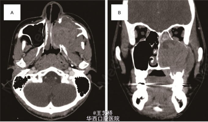 尤文肉瘤是小圆形细胞的低分化的恶性肿瘤,是儿童和青少年第二最常见的恶性骨肿瘤(仅次于骨肉瘤),在头颈部比较罕见,发生在上颌窦则更加少见了。病例中的15岁小男孩出现左侧面部肿胀,实验室检查无异常,进行CT检查时发现上颌窦出现密度影,周围骨质破坏。