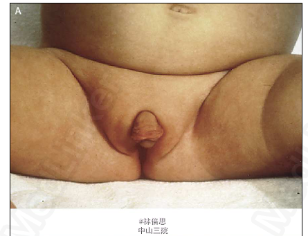 患者,男性,21岁,“生长发育提前5年,色素沉着伴性格渐变10年”。实验室检查:血皮质醇8:00为37.I o.g/L、16:00为27.9g/L、24:00为12.6斗g/L[正常参考范围67~226(8:00),下同],24 h尿皮质醇39.38斗∥24 h(21一111),ACTH 990.81pg/ml(12.00—78),血醛固酮430.76 p∥ml(38.1~313.3),血浆肾素活性8.5l ng·ml一·h。1(O.73,17.4),LH<0.07 IU/L(1.1—8.8),FSH 0.03 IU/L(0.9~12.0),孕酮9.39ng/ml(<0.1~0.2),睾酮4.61 rig/ml(1.66—8.11),硫酸脱氢表雄酮355.40¨s/dl(136.2~591.9),17一羟孕酮>50.00 ng/ml(0.5—2.4),雄烯二酮>10.00 rig/ml(0.30~2.63)。GnRH兴奋试验示LH、FSH均不能被激发。基因测序示该患者CYP21A2基因复合杂合改变($268T,Q318X)。精液分析:排精量0.6 ml(>2),pH 7.4(7.2~8.0),活动率26.14%(>60%),精子密度3.47x106/ml(≥20x106)。性腺B超示双侧睾丸约30 mmxl5 mmx20 mm,实质内皆可见大小不等实质不均质回声团块,左侧大者23 mmXl7 mm。右侧大者20 mmxl3mln,边界尚清,形态不规则,内可见散在沙粒样强回声点。结合病史考虑睾丸肾上腺残余肿瘤。肾上腺CT平扫+增强示双侧 。肾上腺明显结节状增粗,右侧肝肾隐窝处可见一占位,大小约2.5 cmxl.2 cm。CT定位下右侧肝肾隐窝病灶穿刺活检病理示肾上腺皮质增生。诊断明确后给予醋酸地塞米松0.75 mg每日一次口服。皮肤色素沉着较前减轻。体力、精神较前好转.性格逐渐开朗。血皮质醇0.14 Ixg/L, ACTHl4.84pg/ml,17一羟孕酮2.39 ng/ml,雄烯二酮0.87 ng/ml。睾丸B超示左右侧睾丸大小均约35 mmX 16 mmx27 mm,双侧睾丸实质内可见大小不等低回声,左侧大者16 mmx9 mm.右侧大者16 mmx8 mm:肾上腺CT平扫示双侧肾上腺增生较前明显减轻,肝肾隐窝病灶明显缩小.肾脏上移。精液分析:排精量0.6 ml,pH 7.7,精子活动率50.4%,精子密度50.4 X 106/ml。 讨论:H是一组因肾上腺皮质激素合成途径中酶缺陷引起的疾病,属常染色体隐性遗传病。21.羟化酶是肾上腺类固醇激素合成的关键酶之一,由CPY21A2编码,21一OHD与CYP21基因突变 有关,可使糖皮质激素和(或)盐皮质激素合成减少,引起前体物质17一羟孕酮和孕酮堆积,并向雄激素合成途径分流,导致雄烯二酮和T异常升高。同时,皮质醇的合成减少,将会引起ACTH反馈性升高。临床较常见的为女性男性化,需要结合基因筛查以明确诊断。常有家族史。此类患者由于长期高水平ACTH,使肾上腺易发生腺瘤样增生。因此,,治疗的过程中需根据血皮质醇、ACTH、17-羟孕酮的变化调整剂量,其中血浆ACTH水平恢复正常是说明激素替代治疗合适的最重要的实验 室指标。对于CAH合并l肾上腺肿块患者,需行穿刺病理活检明确肿块性质,更加要避免因为肿大的肾上腺而进行没有必要的手术。