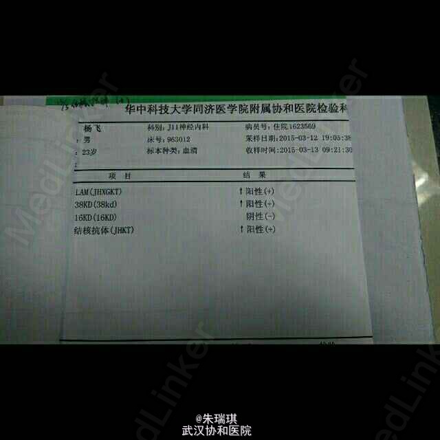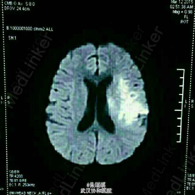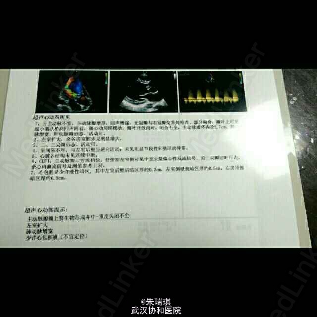 患者男,23岁,一天前无明显诱因突然出现右侧肢体无力,伴不能言语,无恶心呕吐,无晕厥抽搐,患者至当地医院行头部CT未见出血,转至陆军总医院行心脏彩超示主动脉瓣赘生物感染性心内膜炎可能,陆总对患者给予对症治疗,具体不详,后患者病情无明显好转,患者为求进一步诊治现来我院,门诊以脑血管病收入神内病房。 神经内科查体:神清,混合性失语(既听不懂又讲不出),双侧瞳孔等大同圆,对光可,直径约3mm,其余颅神经查体欠配合,颈软,右侧肢体肌力1级,肌张力稍增高,左侧肌力、肌张力正常,腱反射对称存在,右侧病理征(+ ),左侧未引出,感觉系统检查无配合,共济运动无配合。 患者外院头部DWI大片高信号影示脑栓塞。我院超声心动图报告见下。 诊断为中重度主动脉瓣关闭不全、感染性心内膜炎、心源性脑栓塞。对患者使用加立信、倍能抗炎两天后,患者体温无下降。后患者结核抗体检查示结核抗体,t-spot(未拍照)阳性,肺部CT示右肺下叶少量炎症性改变,呼吸科会诊不排除结核病诊断。对患者加以地塞米松,异烟肼、利福平、乙胺丁醇治疗后,患者体温下降。目前无法确定患者体温下降是由于地米作用还是结核药作用,患者按照现有方案继续治疗。欢迎大家讨论。