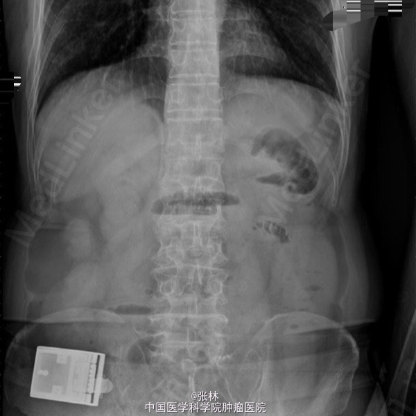男性,72岁。 主诉:突发腹痛、腹胀伴呕吐1天。 现病史:患者1天前无诱因感全腹部疼痛,呈阵发性绞痛,无放射痛,疼痛开始不剧,伴有畏寒,呕吐胃内容物1次,量约30ml。遂到我院门诊就诊,考虑为急性胃肠炎,予抗炎、解痉护胃等支持治疗,症状未见好转,并进行性加重而入住我科。 专科检查:全腹稍胀,未见肠型及蠕动波,无上腹搏动。腹软,中下轻压痛,无反跳痛。全腹未及肿块,肠鸣音活跃,7次/分。 术中所见:探查见异物位于回肠距回盲部约50cm,大小约8*3*2cm,堵塞肠管,近端肠管充血水肿明显,肠管扩张最大处直径约8cm,未见浆膜层破裂损伤等,系膜无扭转,有少许渗液,探查全部小肠未及肿物腹腔内可见中等量黄色积液,稍浑浊,网膜及腹膜有少量脓苔。洗净腹腔内积液,于肿物边缘对肠系膜缘纵行切开约2cm,取出异物,为半个大小约8*3*2cm的冬菇。