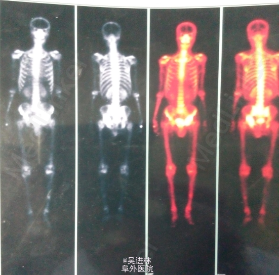 患者老年男性,主因“左髋部疼痛不适2年余”入院;查体:左侧腹股沟压痛+;活动度受限;4字试验+,托马斯征+;辅助检查:CT示左侧髋臼骨多发骨质破坏,累及周围软组织;全身骨显像示左髋臼窝核素浓聚灶;MIR描述如图。T-spot阳性!现在对于诊断基本持两种意见:因为患者病灶累及软组织,MRI上髂腰肌可见高信号,而且T-spot阳性,考虑TB。另外一种观点认为:病人除了T-spot并无其他TB征象,而且如果是TB的话,现在早就应该形成冷脓肿和窦道了,再者从MRI上来看,病灶呈膨胀性生长,边界清楚,所以考虑骨肿瘤可能性。what do you think?