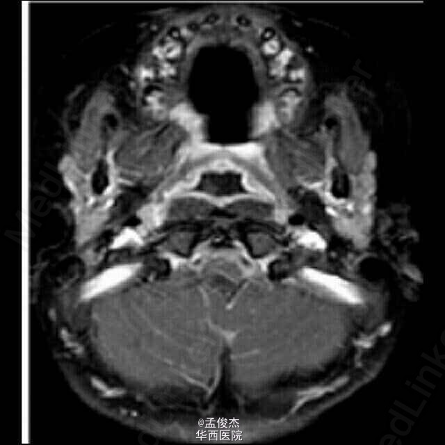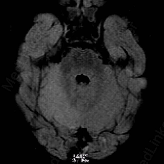 患儿女,33个月大,发热3天,体温最高102°F,伴有心动过速,130次/分。阵发性癫痫一天,伴有尖叫,双手紧握,双眼上翻,症状持续几秒到一分钟,仅在睡眠中发生。患儿在睡眠中易醒,既往有轻度哮喘。查体,黏膜干燥,余者无明显异常,血常规电解质水平检查无异常,血气分析示碳酸氢盐12 mmol/L,血糖69 mg/dL,尿中有大量酮体;脑脊液检查显示每立方毫米2个白细胞,1040个红细胞。头颅CT无明显异常,腹部超声无明显异常。 予总量为40 mL/kg 的生理盐水治疗心动过速,患儿心率恢复正常。使用万古霉素,头孢曲松钠治疗可能存在的败血症。 住院期间患者的癫痫持续发作,逐渐发展为吞咽困难,无法说话和右侧肢体无力。血尿脑脊液培养结果为阴性,停止输入抗生素。脑电图无异常。MRI示小脑右半球T2信号增高提示小脑水肿。碳酸氢盐升高至18 mmol/L,尿液中持续存在大量酮体。酮硫解酶 基因检测正常。CT检查示回肠末端的不规则增厚,管状软组织突出入盲肠。病毒PCR示患儿H1N1感染。 最终诊断为病毒性脑炎。患儿接受奥司他韦治疗后,明显好转,若干月后出院。 病毒相关脑炎与甲型流感关系最为密切,常见于5岁儿童。感染一周后出现症状,死亡率为37%。流感病毒导致的脑损伤并不经常表现为脑炎而是表现为代谢障碍,酮体增加,小脑水肿。