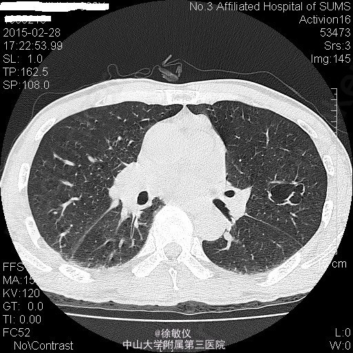 老年男性,主诉:咳嗽、咳痰2月余,头痛、纳差伴四肢乏力5天。 现病史患者2月余前无明显诱因出现咳嗽、咳痰,呈连声咳,咳白色稀薄痰,未予特殊治疗。5天前无明显诱因出现头痛,为右侧颞部持续性隐痛,尚可入睡,伴有纳差,四肢乏力。遂来我院门诊,查胸部CT示:1、左肺上叶尖后段空洞性病变;纵隔多发肿大淋巴结;中~大量心包积液。2、右肺中叶及双肺下叶少许慢性炎症。遂收入院。 查体:生命体征平稳,查体无特殊。 入院后予行心包穿刺抽液,心包积液检查:浆膜腔液总蛋白47.7g/L,乳酸脱氢酶306U/L,浆膜腔积液葡萄糖5.76mmol/L,白细胞计数2150X10E6,颜色黄色,粘蛋白定性试验+/-,红细胞计数1570X10E6,透明度微混,凝固物有凝块,淋巴细胞0.88,中性粒细胞0.12。血清 癌胚抗原>100ug/L。 血清乳酸脱氢酶:358U/L。 暂予头孢美唑钠(悉畅)注射剂2g Q12h,左氧氟沙星氯化钠(可乐必妥)注射液0.6g Qd抗感染治疗。 因患者诉头痛明显,行头颅MR提示:1右侧蝶骨嵴肿物,考虑脑膜瘤;双侧小脑半球及小脑蚓部肿物并双侧小脑半球脑沟脑回样强化,考虑转移瘤并脑膜转移,梗阻性脑积水。 诊断:1、心包积液 恶性肿瘤转移 2、高血压病 2级 高危 3、头部恶性肿瘤 颅内转移 4、脑膜瘤 5、肺部感染 患者肿瘤情况不明,出院后第二天因脑疝死亡。