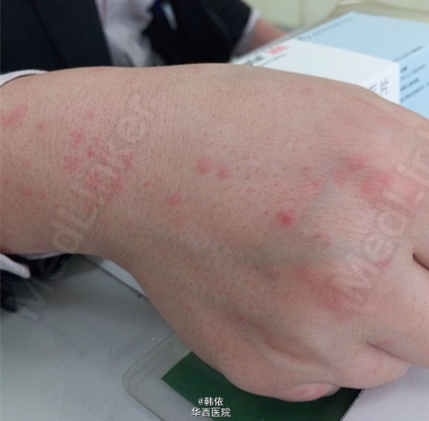{原创}门诊患者,青年患者,因“近2年睡眠中发作性全身抽搐2次 ”来就诊,发作时意识不清,呼之不应,身体挛缩,手脚僵直,口吐白沫,发作持续10+min,醒后无法回忆。入院后行相关检查,诊断为癫痫,给予卡马西平治疗。服用8个月后,患者换用奥卡西平治疗,服用奥卡西平约3至4天,全身出现红色皮疹,发痒。查体:神清,全身可见红色皮疹,高级神经功能正常,感觉、共济未见异常,四肢肌力肌张力正常,双侧病理征阴性,脑膜刺激征阴性。嘱患者停用奥卡西平,于皮肤科就诊,待皮疹消退后再行调药。