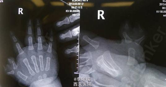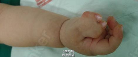 患儿,男,1岁2月,蟹钳指,侧弯严重,采用传统BC融合术。术后1个半月,家长述手指已经完全伸直,MP活动可,IP主动活动轻微,被动活动可以正常。