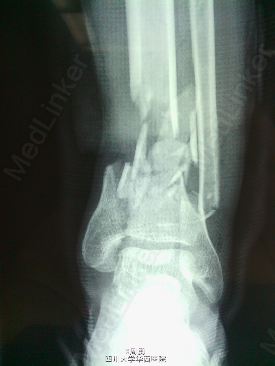 某些腓骨骨折常无需处理,但在开放性骨折一期处理创面同时,为了达到恢复肢体长度、条件允许情况下最大可能复位骨折、简化二期手术目的,某些时候复位腓骨并闭合穿克氏针对骨折复位和固定会有一定帮助,选几年前2个博士住院总期间X片示意,欢迎大家交流。