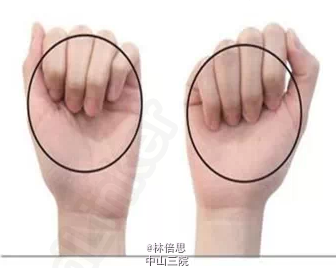 所周知,饮食治疗是维持血糖稳定的基础,“管住嘴”对糖尿病患者的重要性不言而喻。但一日三餐究竟该吃多少?营养又该如何搭配?不少病友依然是一头雾水。如果严格按照“称量法”,每次饭前都拿个天平秤称一下要吃的东西不免过麻烦。现在,糖尿病友再也不必为“吃”犯愁了,只需伸出您的手,便可轻松帮您搞定“吃”的问题,这就是下面将要介绍的饮食控制 “手掌法则”。 1、1克碳水化合物能提供4千卡热量,碳水化合物应占你总热量摄入的55%。普通成人一天的主食(即碳水化合物)约为5~6两。每顿吃的淀粉类主食(如馒头、花卷、米饭等),一个拳头大小(2两左右)就够了,每天2~3个拳头的主食就差不多了。当然,如果患者年轻,运动量大、体力活动多就可以添一点;如果是老年患者,运动量比较小,那么一定不要超过这个量。 2、1克蛋白质能提供4千卡的热量,蛋白质应占你总热量摄入的15%~20%。一个人每天摄入蛋白质的量约为每千克体重1克。如果你的体重有60千克,那么一天所需的蛋白质约为50~100克。50克蛋白质,若换算成瘦肉(指鸡肉、鸭肉、猪肉、牛肉、羊肉等禽畜肉)相当于食指与中指并在一起的大小;若换算成鱼虾、禽蛋或者豆制品,大约相当于一个掌心大小。一个成年人每天蛋白质的摄入量应该控制在100克(2两)以内,大约相当于“一个掌心的鱼虾 + 两指长宽的瘦肉”。 3、1克脂肪能提供9千卡热量,脂肪应占你总热量摄入的25%~30%。而我们一天所摄入的脂肪,除了来自于烹饪油,还包括大量的肉类、奶类甚至坚果类。因此,在烹饪时油就不能放太多,每人一天的油脂摄入量应控制在25克以内,一个大拇指尖(第一节)就差不多了。如果是三口之家,那就是全家一天摄入3个大拇指尖的量就够了。 4、两手一捧的青菜量大约有500克,每天进食500~1000克蔬菜可满足需要。当然此处所说的蔬菜是指低碳水化合物的绿叶蔬菜,如白菜、菠菜、卷心菜、豆芽等。但要注意的是,象土豆、山药、红薯、莲藕等根茎类蔬菜由于淀粉含量较高,应该按主食来算,如果吃了这类蔬菜就要将其所含热量从主食中扣除;另外,果仁类(如花生米、核桃仁等)油脂含量很高,也不能按蔬菜对待。 5、水果:水果200g相当于1个拳头大小,一天需要的水果量一个拳头大小就够了。 6、酒:每天一个指节高度。
