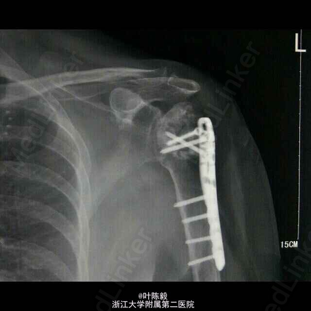 患者女性,66y,肱骨头骨折钢板内固定术后3年,现左肩疼痛,X片示左肱骨头缺血坏死。拟收入行全肩置换。